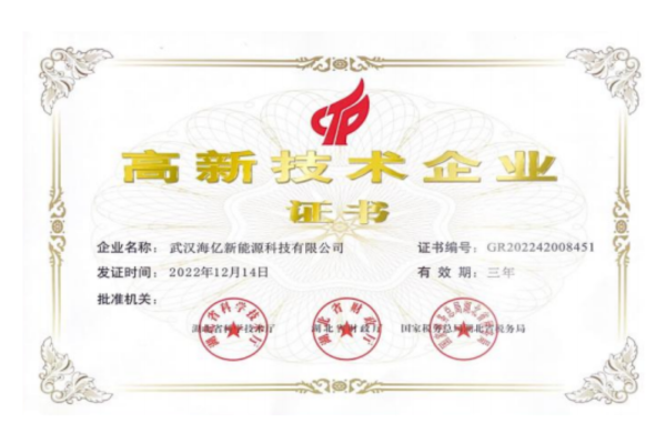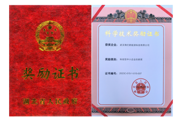 海亿新能荣获湖北省专精特新中小企业认定,荣获2023年度湖北省科技型中小企业创新奖(全省仅15家科技企业入选该奖项),荣获武汉市“光谷瞪羚”企业认定,荣获国家电投氢能科技发展公司“最佳合作伙伴奖”