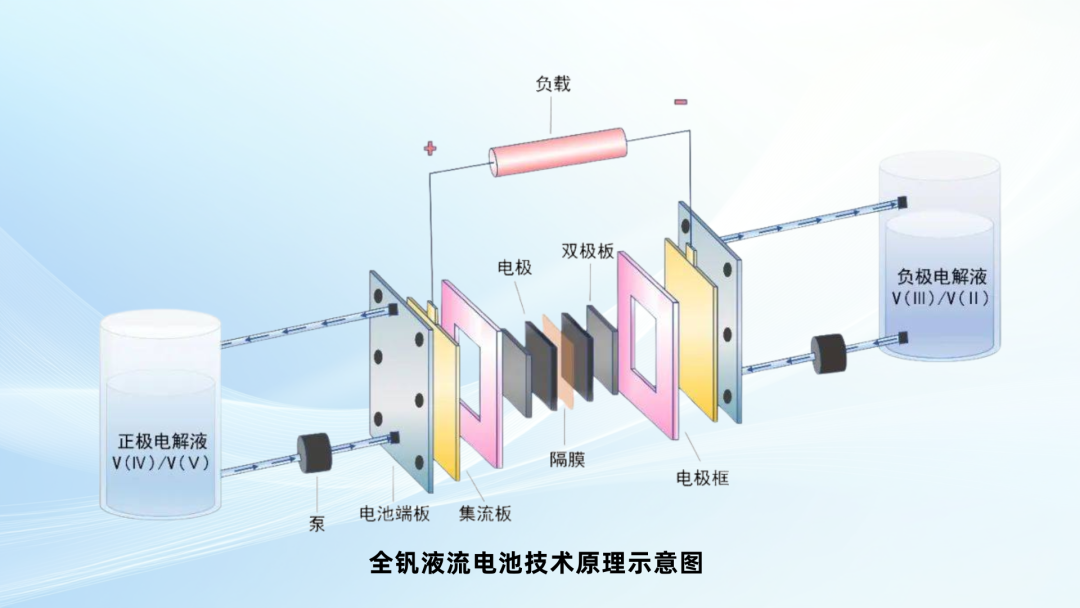 液流电池电解液中的钒离子被离子交换膜阻隔在正负极两侧,不同价态的钒离子无法直接接触,离子交换膜通过选择透过性实现质子定向传导,维持体系电中性,保障放电反应顺利进行。