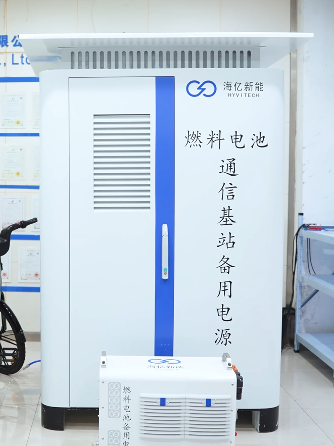 海亿新能自主研发设计的氢燃料电池通信基站备用电源,能够有效替代柴油发电机和锂电池,减少废气排放、噪音污染及化石能源消耗,并大幅降低通信基站备用电源维护成本。